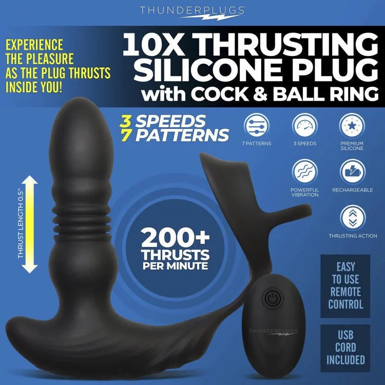 Thunderplugs 10x Thrusting Plug W/ Cock & Ball Ring