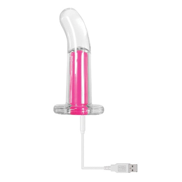 Specifications: Clear vibrating curved shape with remote control. Stylish design with hot pink bullet under clear body. Curved, rounded tip shape. 10 vibrating speeds and functions. Red LED illuminates buttons on adult toy and remote control. Flared base for safety. Sex toy height 4.84 inches, depth 2.28 inches, width 2.28 inches. Remote control height 2.54 inches, depth .73 inch, width 1.47 inches. 4.5 inches insertable length, 1.1 inches diameter. 30 feet remote control range. Bulk weight under .5 pound. Made from smooth and durable ABS plastic. Waterproof vibrations, submersible for bathtub play. Made with body safe materials: Phthalate free and latex free. Magnetic rechargeable, USB cable included. Remote control uses 1 CR2032 battery, included. 5 years warranty. Evolved Novelties - Gender X.
