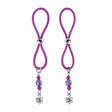 A simple and sexy way to adorn the nipples. Body safe silicone halos will tighten around the base of the nipple by sliding the bead to the desired pressure. Enjoy increased sensitivity to your nipples while looking beautiful.
