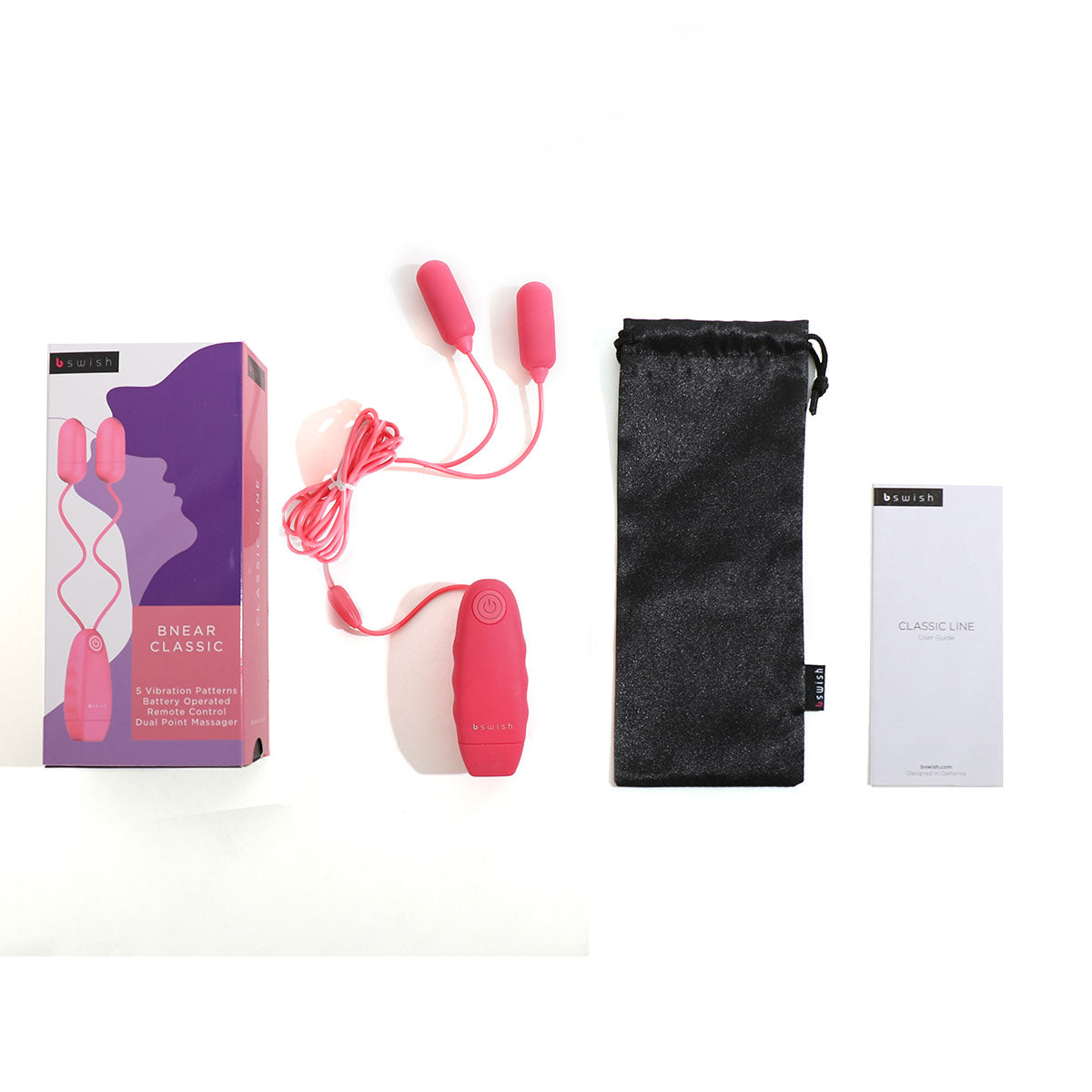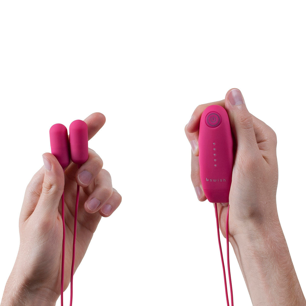 Double the fun with this sensational pair of vibrating bullets. Use them to stimulate sweet spots of your choice, solo or with a partner. Control the powerful 5-function action with the ergonomic controller. The incredible mini bullets prove that size isn't everything with their power and intensity. A corded remote control takes the waterproof bullets through their various speeds and functions.