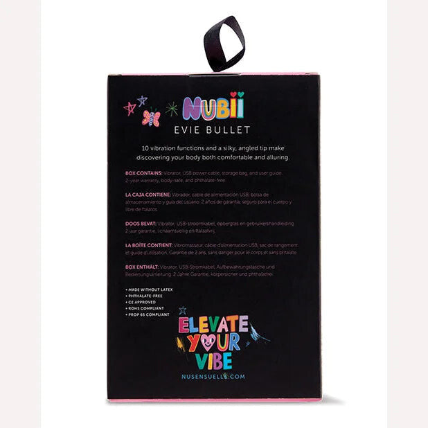 Features: 10 speeds plus 10 modes. Memory function. Discreet. Travel friendly. Merriam Webster defines iconic as being widely known and acknowledged, especially for distinctive excellence. Which is just a fancy, roundabout way of saying Nu Sensuelle’s latest power bullet vibrator. With 20 bold vibrations and a flirtatious silhouette, Iconic puts a playful twist on Nu Sensuelle’s legendary Point bullet. We took our best selling product, reimagined its design, and kicked up the power with our 60SX motor. Simply put, it is the most powerful 10 speeds and 10 modes you will likely ever feel. Nubii Evie Bullet specification: materials body safe Silicone coating. Size .66 of an inch by 3.12 inches. Bulk weight .05 of a pound. Speeds + Pulsations: 5 speeds + 5 pulsations. Charge type: Magnetic USB charging port; pink and purple options come with matching colored cords. Charging time: fully charged within approximately 2 hours. User time: 25 minutes to 50 minutes. Interface : 1 button control. 2 years warranty. Categories: Vibrators, Bullets, Eggs Vibrators, Rechargeable Vibrators, Sex Toys for Women, Vibrating Bullets and Eggs. Restricted, Amazon Restricted. 2023.