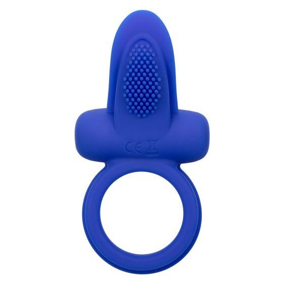 Silicone Rechargeable Dual Pleaser Vibrating Cock Ring from California Exotic Novelties.The Silicone Rechargeable Dual Pleaser Enhancer mixes 7 intense functions of vibration with flickering and tickling package for double the knee shaking pleasure. The stimulator ring is great for beginners looking to spice things up or erotic experts looking to add intense pleasure to their arsenal. The plush body safe Silicone ring works to improve stamina and girth to make your lover moan for more, more, more. The tight ring maximizes sensitivity and elevates sensation throughout the penis increases as well, letting men enjoy longer, more powerful pleasure. While you reach next level pleasure, the 7 vibration functions and flickering tongue-like teaser will leave your lady in a state of orgasmic bliss. Ladies, while his pleasure increases, so will yours! The ergonomically shaped stimulator and nub teasers deliver pinpoint pleasure on your most intimate sweet spots. Take this waterproof ring for a dip and embrace those powerful vibrations in the bath, shower or hot tub. This passionate cock ring remembers exactly how you like it with the state of the art memory chip and can pick up on the last function used. Use the easy touch silicone buttons or remote control to effortlessly control pleasure. Recharge your pleasure in no time with a charge time of 1 hour. Color Blue. Materials Silicone, ABS Plastic with Metallic Plating. Power source USB Rechargeable included.