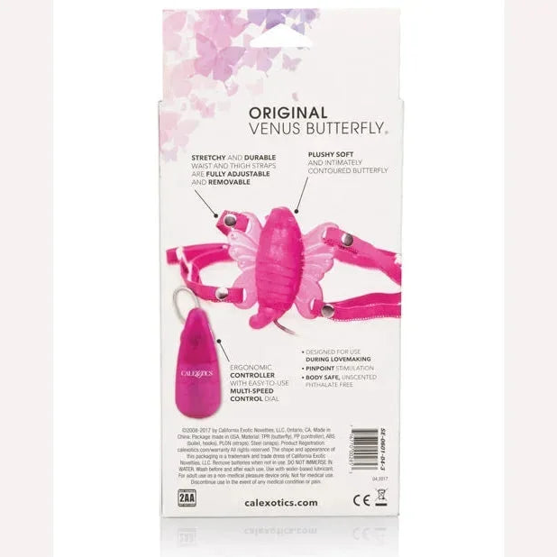 Venus Butterfly Pink from California Exotic Novelties. Million dollar seller! The Original Venus Butterfly. Venus Butterfly was developed exclusively for women, this unique pleasure device can be worn anywhere, providing maximum freedom of use, even in public, yet allowing ultimate privacy. It is specifically intended to stimulate the most sensitive parts of the female anatomy. The continuous control wire remote power pack can easily be slipped into a pocket. Adjustable straps fit comfortably around the waist and legs and the unit comes ready for use. The Venus Butterfly massager will turn an ordinary day into an exciting erotic adventure. Safe and pure for body and pleasure. Made using phthalate free, non-toxic materials: unscented soft Thermoplastic Rubber TPR butterfly, ABS plastic bullet vibrator. Venus Butterfly measures 3.5 inches long by 3.5 inches wide. Vibrating sex toy requires 2 AA batteries, not included. One size fits most. Category: For Women, Vibrators, Stimulators, Top Selling Sex Toys. Pursuant to 18 U.S.C. 2257, The Original Venus Butterfly was produced on November 8, 2004, and the records required to be kept by that law are available at 14235 Ramona Avenue, Chino, CA 91710. Custodian of Records: S. Colvin. The Original Venus Butterfly is a registered trademark for California Exotic Novelties. Sex toys and sexual wellness. Restricted, Amazon Restricted. Video. 2022.