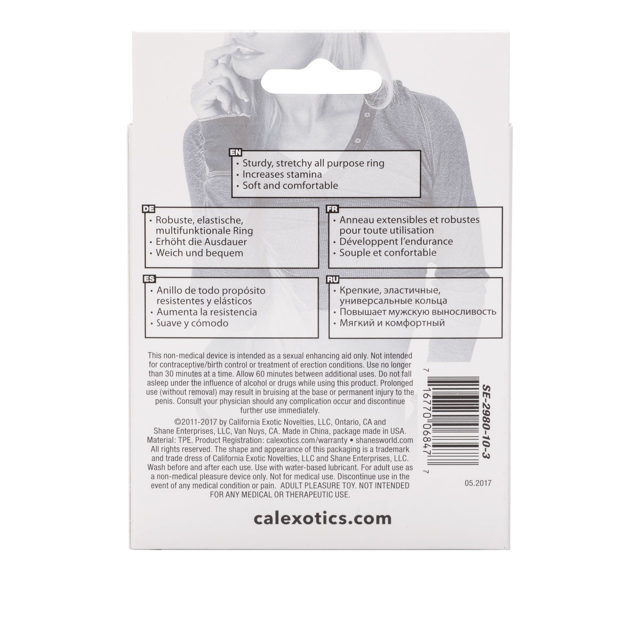Sex, toys and rock and roll collection. Shane's World Rock Star Ring Black. Erection enhancing rings for comfortable support and increased girth. You will feel like an unstoppable, insanely desirable rock star when you slip on the Shane’s World Rock Star Ring. Roll this comfortable, erection enhancing ring over your cock and get ready for a firmer, harder, fuller-feeling erection that will leave your partner full of desire. This ring is perfect for increasing stamina and keeping your cock supported for all kinds of play. You and your partner will both love your newfound ability to keep thrusting, teasing, and pleasing past your normal threshold. Your partner will go wild for the sense of increased girth that comes from keeping blood flowing into your penis but not out. The ring fits snugly and rolls securely onto the base of your shaft. Just roll it onto your erection, find the spot that makes you feel amazing, and get ready to play. The material is stretchy and pliable, so the adventurous will love the option to pull the ring over your balls for an intense burst of sensation. It is stretchy, flexible, and fits perfectly on most men. You will love the increased sensation of subtle constriction and built up blood flow, and your partner will love having a rock hard rock star cock to enjoy. Channel your inner rock star and slip this comfortable ring on for your next encounter! Safe and pure for body and pleasure. Made using phthalate free, non-toxic materials Thermoplastic Rubber TPR. A water based lubricant is recommended. Cock ring measures .75 inch in diameter. Bulk weight 0.6 ounce. Cock rings when worn around the base of the penis and testicles, many users find that cock rings increase sexual pleasure. Prolong rings, erection enhancement, climax control rings, cock rings. Always clean before and after use. Category: For Men, Rings & Sleeves, Rings. Shane's World Rock Star Ring Black from California Exotic Novelties. Sex toys and sexual wellness. Calexotics - Rings.