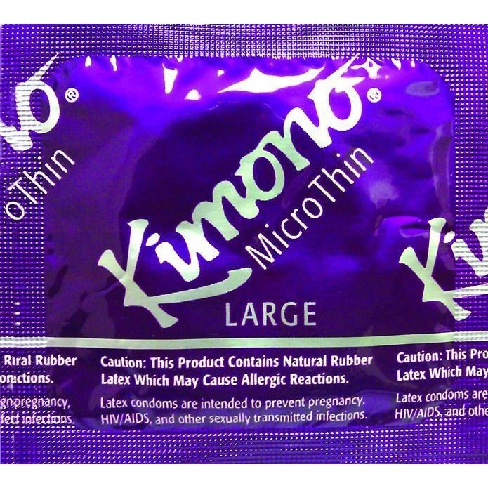 Features: Lubricated, Ultra Thin, Large Size. A condom is a barrier device most commonly used during sexual intercourse to reduce the probability of pregnancy and spreading sexually transmitted diseases, STDs such as gonorrhea, syphilis, and HIV. It is put on a man's erect penis and physically blocks ejaculated semen from entering the body of a sexual partner. Safe sex practice, birth control, disease prevention, pregnancy prevent. Kimono Condoms are all natural, vegan friendly and no animal or milk proteins. Caution: this product contains natural rubber latex, which may cause allergic reactions. New images added September 14, 2012. Please note the package is in the process of changing. -old