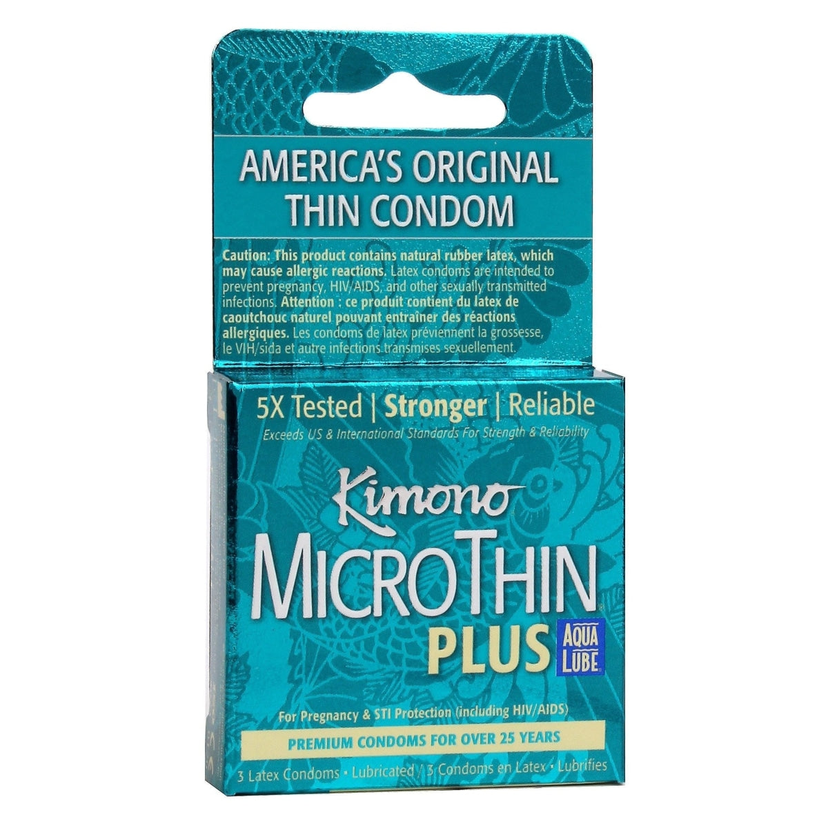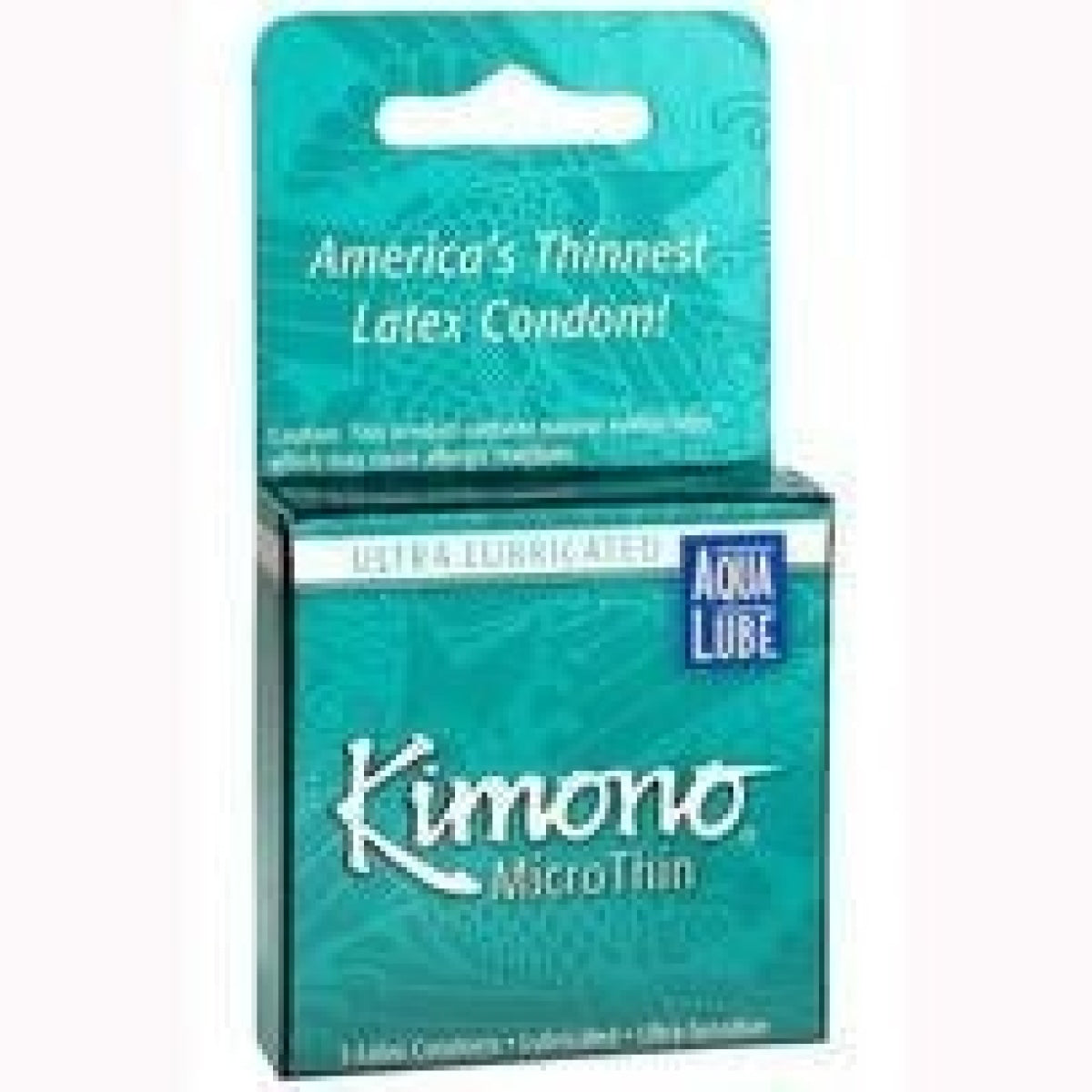 Kimono Microthin with Aqua Lube Condoms 3 pack from Paradise Products. America's Original Thin Condoms. 5X tested stronger, reliable. Exceeds US and International Standards For Strength and Reliability! Kimono Microthin with Aqua Lube Condoms 3 Pack. Kimono's thinnest condom combined with their water-based lubricant. Aqua Lube is pH balanced, non staining and long lasting. Aqua Lube effectively combines with the body's natural lubrication creating instant excitement for both of you. Pre-lubricated with their special proprietary Aqua Lube, these Kimono MicroThin condoms offer a superior barely there feel that is 20% thinner than a leading competitor's thin condom! The cool, refreshing moisture of Aqua Lube promotes a more comfortable and sensually slick experience each time you slide one of these form-fitting condoms on. Kimono MicroThin feels like wearing nothing at all, and promotes more intense sensations during lovemaking, while still ensuring protection against STDs and unwanted pregnancy. These ultra thin latex condoms are giving a sexy twist to staying safe between the sheets! Type: Latex Condoms Material: Latex Pack: 3 Condoms Special