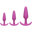 Specifications: total length small plug 3.25 inches, medium plug 4 inches, large plug 5 inches. Insertable, usable length small plug 3 inches, medium plug 3.75 inches, large plug 4.75 inches. Width, diameter small plug 0.75 inch, medium plug 1 inch, large plug 1.25 inches. Circumference small plug 3 inches, medium plug 3.5 inches, large plug 4.25 inches.