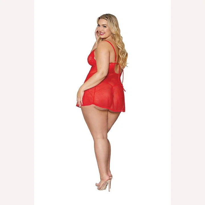 Lace & Mesh Babydoll & G- String Set Lipstick Red Q/s - Red / Queen O/S is backordered and will ship as soon as it is back in stock.