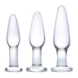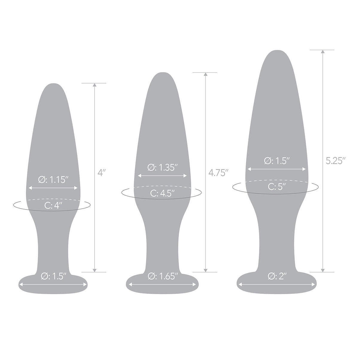 This 3-piece glass anal training set will take you through three different levels of anal play to prepare you for your journey through the back door.