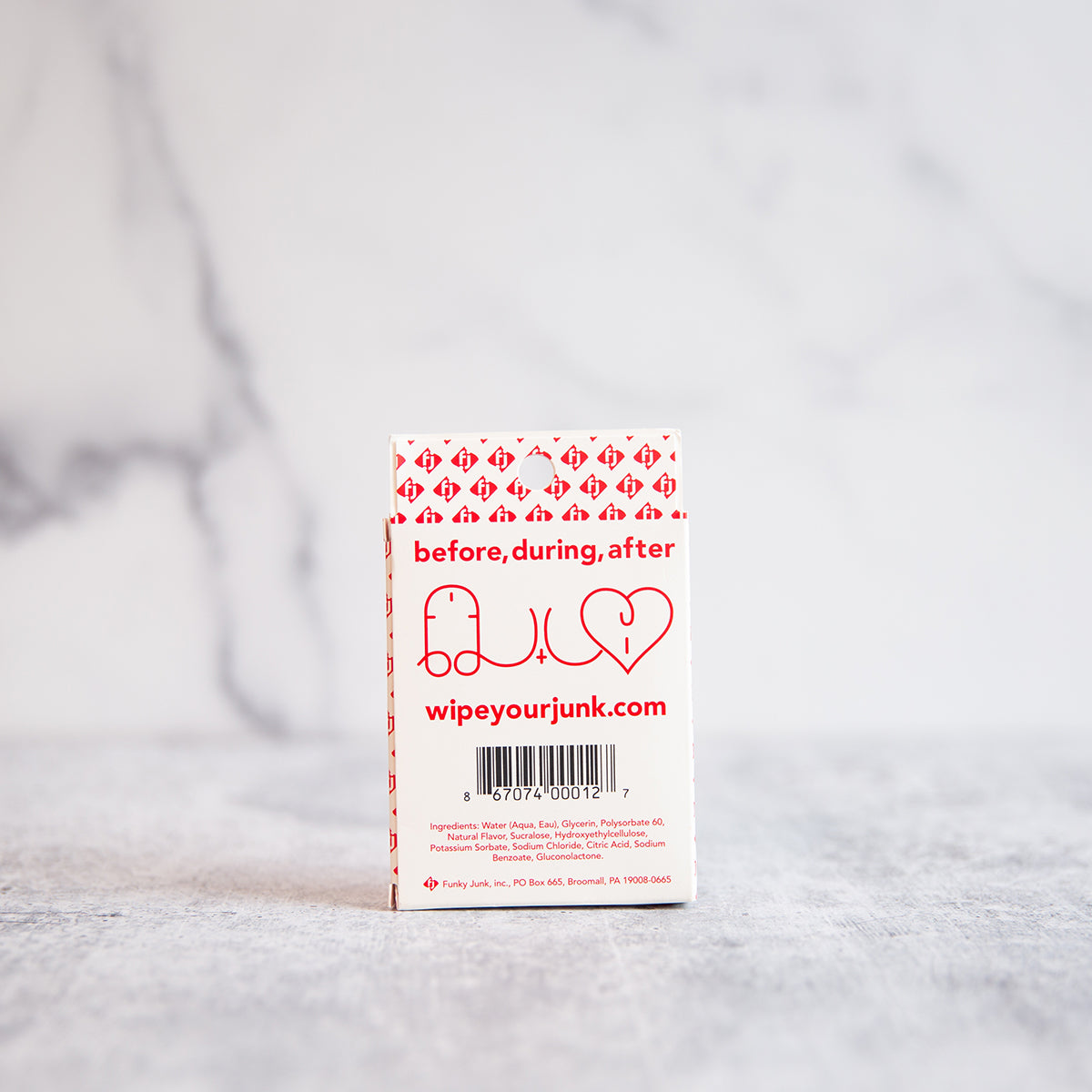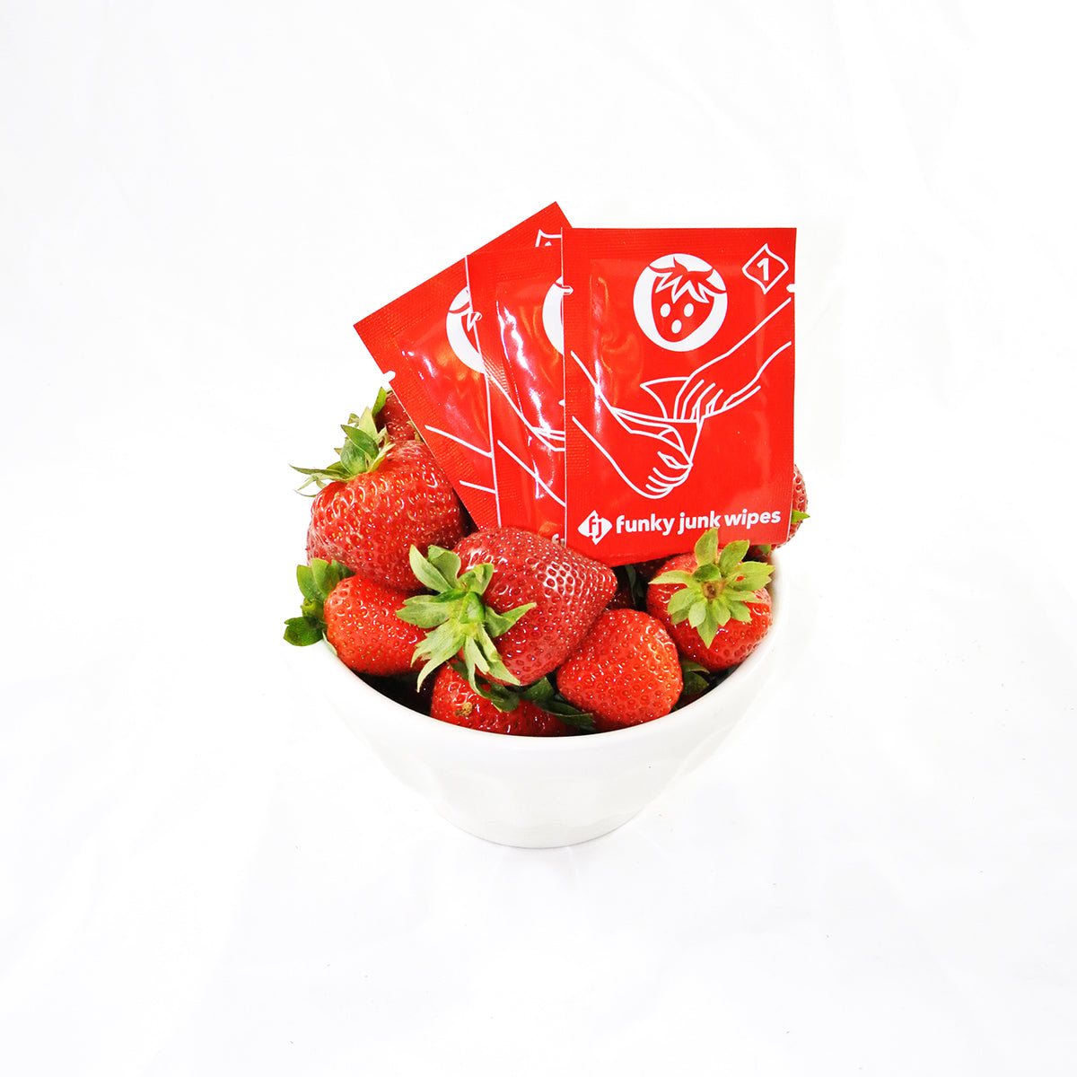 Funky Junk Wipes come individually sealed and small enough to discreetly travel anywhere that you do. They're a great way to freshen up before, during, or after getting down and dirty. Each wipe packs a fragrant yet cleansing punch of strawberry flavor and can be used as an alternative to any non-flavored wipe products.