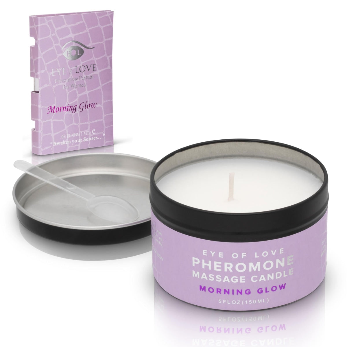Eye of Love Pheromone Massage Candle is specially formulated for those moments when you can use that extra touch of romance and attraction. A fresh bouquet of ylang ylang, sensual jasmine, citrusy apple blossoms, freesia, and deep purple violets. Undertones of soft white musk will keep him mesmerized from morning to night. Specially formulated for women to be used in the daytime to provide an extra glow. Use Eye of Love Morning Glow to be more outgoing, social, and charismatic.