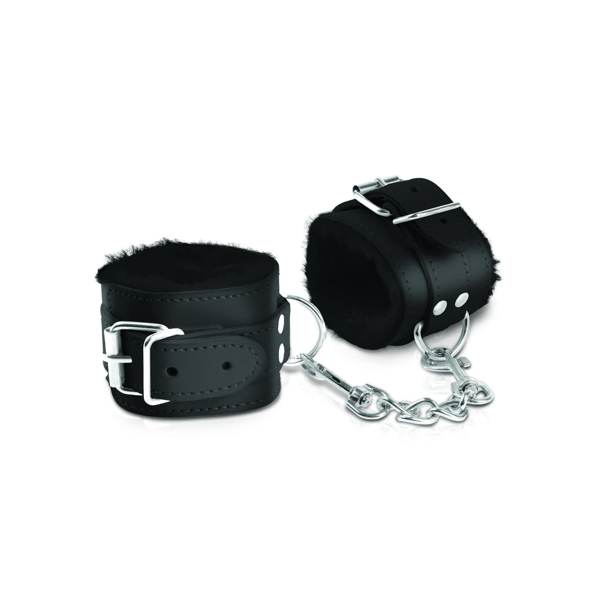 Fetish Fantasy Limited Edition Cumfy Cuffs Black. The use of restraint has always been a sexual stimulant with these fur lined Cumfy Cuffs, fantasy becomes reality! Lined with velvety soft faux fur, these heavy-duty cuffs keep your lover comfortably restrained and looking sexy. They are made to play hard with super sturdy metal hardware and buckle closures to ensure they won't escape anytime soon. You will both love the sensuous feel of the soft fur as it teases and titillates. Lock up your lover and explore your deepest fetish fantasies! Materials: vinyl, polyester, metal.