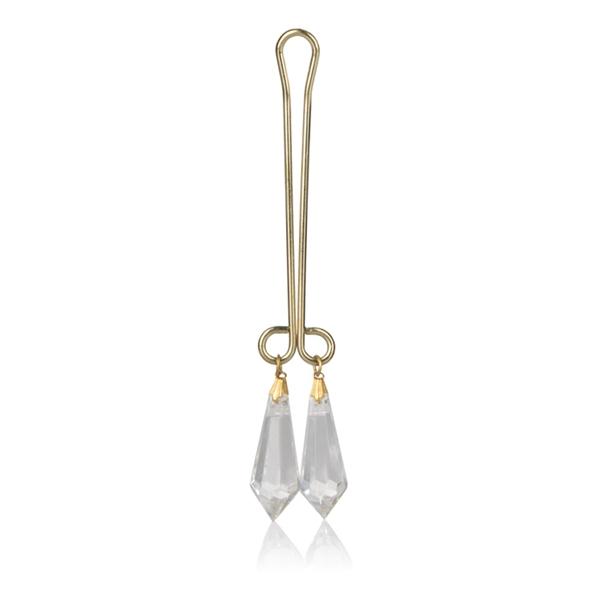Cleopatra Collection Clitoral Jewelry Crystal Clear. Non-piercing clitoral jewelry is designed to remain in place without inflicting pain. This item is a type of jewelry used to add to a woman's sex appeal. This is not a torture device. Non-tarnishing, nickel free body jewelry for women. Safe and pure for body and pleasure. Made using phthalate free, non-toxic materials ABS plastic crystal, Steel clip. Clitoral clip measures 4.25 inches long. Bulk weight 1.2 ounces. Category: For Women, Attire & Adornments, Jewelry. Cleopatra Collection Clitoral Jewelry Crystal Clear is a registered trademark for California Exotic Novelties. Sex toys and sexual wellness. 16.