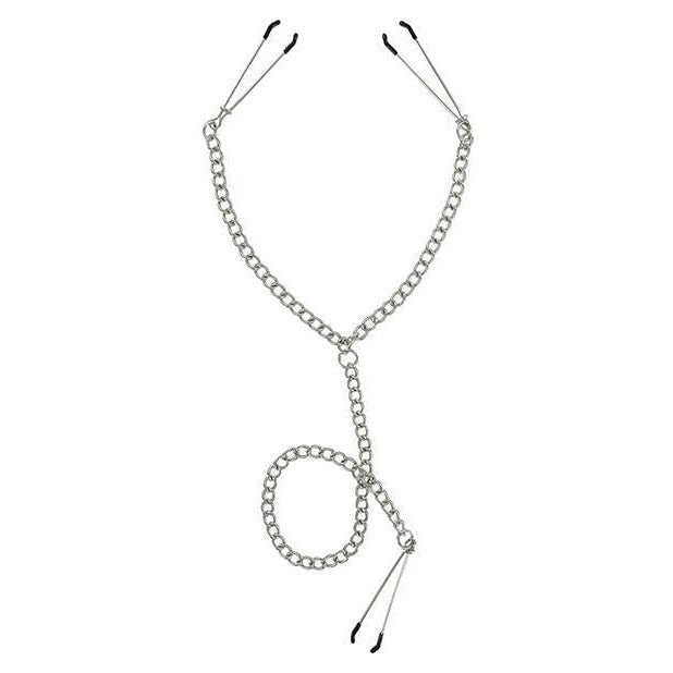 Connect her most sensitive areas together. These clamps have vinyl-coated ends, linked chain, and a sliding ring to adjust the tightness anywhere from just enough to hold them on all the way up to a really severe tit torturing pinch. They stay on, they are easy to use, they look good, and they can be heavy or light or anywhere in between. Measurements: 24.5 inches in total length, nipple chain measures 18 inches in length, clit chain measures 15.5 inches in length. Clamps open up to 1 inch in width and close completely