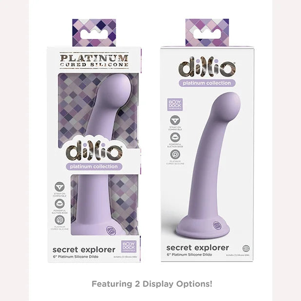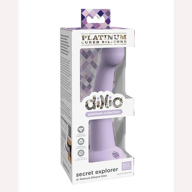Dillio Platinum 6 inches Explorer Purple Silicone Dildo from Pipedream Products. The Dillio Platinum Collection is made with platinum cured silicone for the highest degree of purity. This ultra clean Silicone exhibits strength, durability, flexibility, and non-reactivity with bodily fluids and skin. It is often the material of choice for medical devices because of its many outstanding features. The solid suction cup offers superior performance and gives you more versatility and convenience during use. It was specifically designed to be used with the Body Dock and other universal strap on harnesses. Every Dillio Platinum is responsibly crafted with compliant materials and carefully checked to match our top quality guidelines. You can enjoy every Dillio Platinum masterpiece with full confidence!