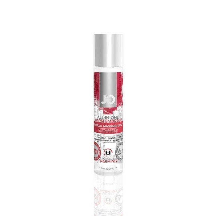 JO Massage Glide is designed to let you relax and allow you to go safely from sensual massage to sexual intimacy. JO Massage Glide is silicone based and its unique formula provides a silky smooth massage, never feeling greasy, oily or tacky. JO Massage Glide is 100% latex safe and is long lasting. One drop of JO Massage Glide equals 10-15 drops of other massage oils. JO Massage Glide is available in Unscented, Warming as well as therapeutic aromas Lavender. Each sold separately. Ingredients: Dimethicone, Dimethiconol, Mentha Piperita Peppermint Oil, Capsicum Frutescens Resin. Made in the USA. 2021.