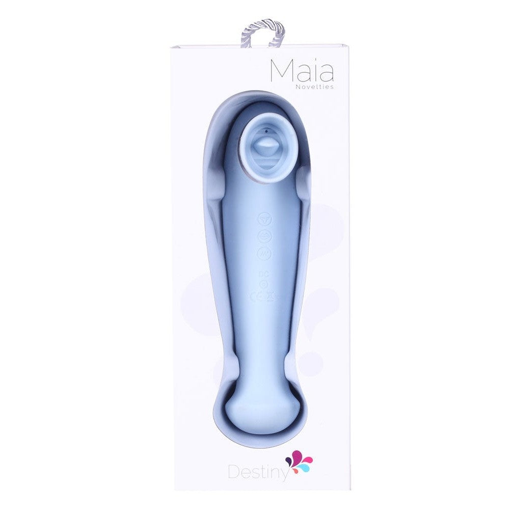 Destiny Blue Sucking Clitoral Stimulator from Maia Toys. Destiny is a 3 in 1 clitoral sucking toy that also features vibrations, and a tongue flutter! The three motors in Destiny can be controlled at the same time or independently depending on how much stimulation the user would like! Each motor features 15 different patterns for endless combinations of fun. The destiny will be shipping at the end of November just in time for the holidays! We are only expecting one shipment of these before Christmas/valentines day. USB Rechargeable. Made using body safe, phthalate free Silicone. Bendable. Submersible. One year warranty from Maia Toys.