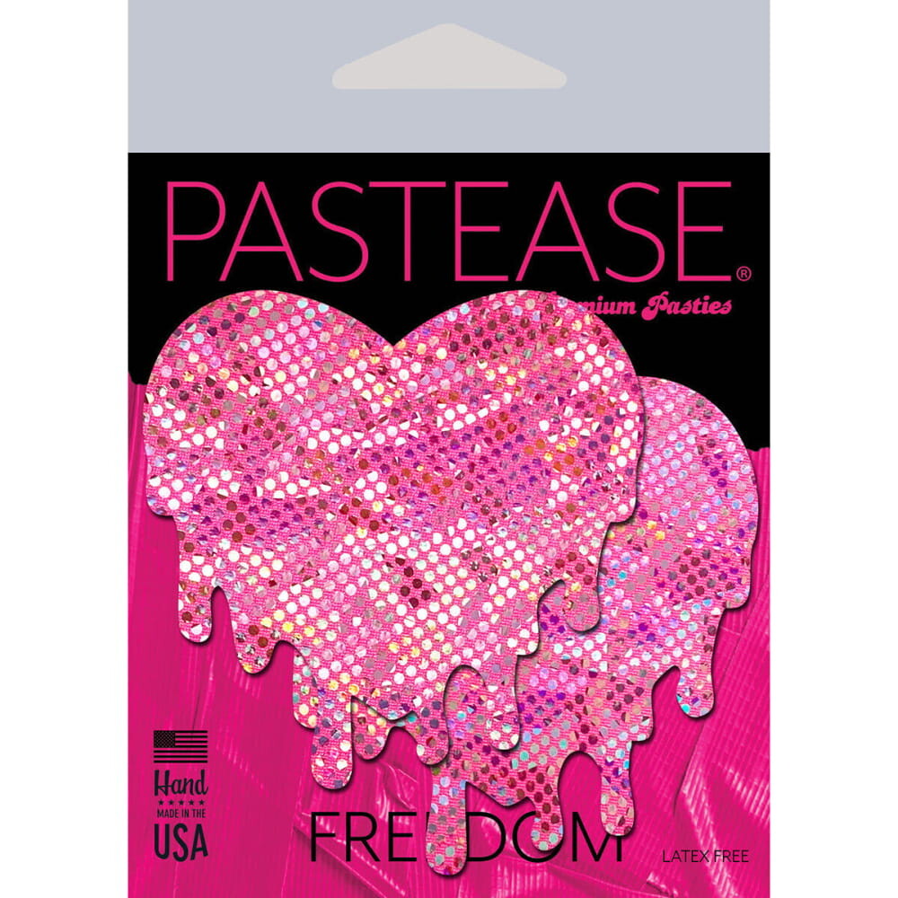 Melty Heart Nipple Pasties by Pastease are hand-made in the USA of soft form-fitting glittery material that forms seamlessly to curves and resists wrinkling over hardening nipples.