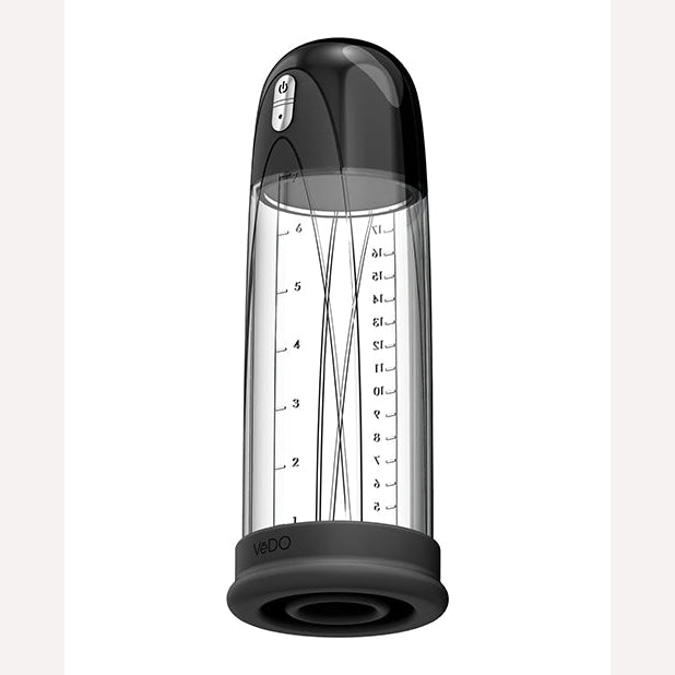 Vedo Pump Rechargeable Vacuum Penis Black. Cylinder feature marking for both inches and metric.