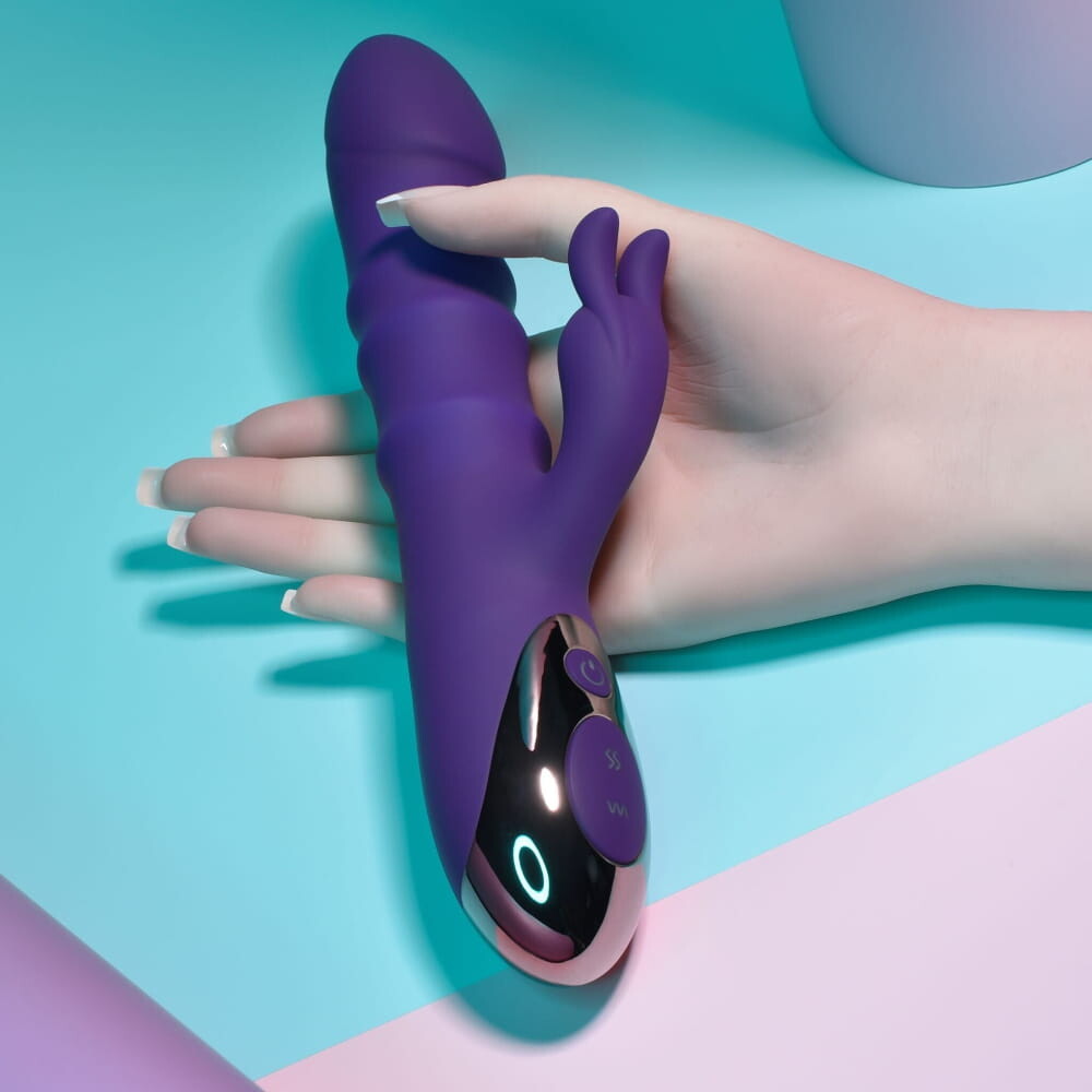 Specifications: unique 3 ring moving shaft Rabbit Vibrator. Materials: Body safe Silicone, Phthalate free, Latex free. Size height 9.25 inches, depth 3.06 inches, width 1.7 inches, diameter 1.53 inches. 3 thrusting shaft speeds. 10 vibrating shaft speeds and rhythms. 10 vibrating Clitoral speeds and rhythms. Hold power button for 2 seconds to turn on/off. Additional buttons control vibrations and speeds. Magnetic USB Rechargeable. Charging time 200 minutes. 90 minutes run time on high power. 110 minutes run time on low power. Waterproof vibrations. Submersible for easy cleaning and play outside the bedroom. 5 years manufacturer's warranty. Care: only use a water based personal lubricant. Clean with a toy cleaner, rinse with warm water, pat dry dry before storage. Categories: Vibrators, Rabbit Style Vibrators, Rechargeable Vibrators, Sex Toys for Women, G-Spot Rabbit Style Vibrator. 2023.