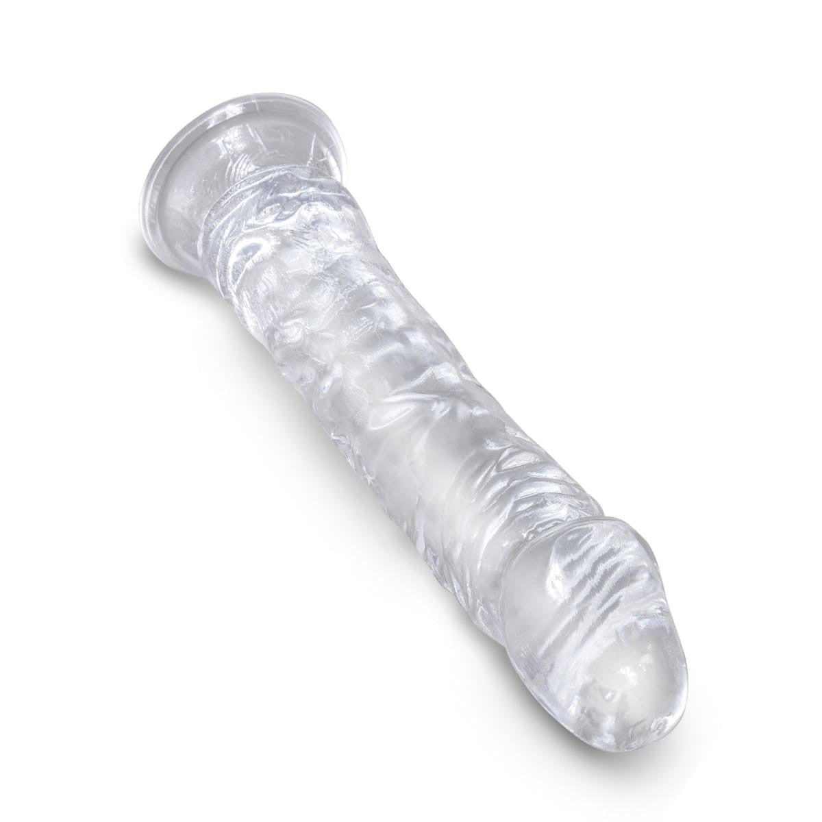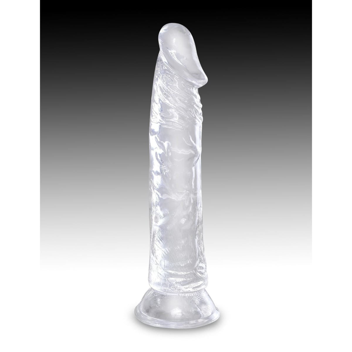 King Cock Clear 8 inches Cock Realistic Dildo from Pipedream Products. Clearly the best! Created to heighten your pleasure experience, this specially crafted formula is virtually odorless, non-sticky, and easy to clean. King Cock Clear combines a translucent dildo with a realistic cock design. The luminous clarity and life like form will fulfill all your fantasies! With its flexible shaft, detailed veins, and defined head, King Cock Clear will engage your senses visually and physically. The powerful suction cup base sticks to nearly any flat surface and makes every dildo harness compatible. See the innovation. An incredibly pure, translucent material. Feel the realism. A life like design with every vein, shaft and head carefully hand crafted. Enjoy the action. A powerful suction cup base sticks to nearly any flat surface. Experience the advantages. Effectively harness compatible with the sturdy suction cup detail. Bulk weight 8.5 ounces. Package depth 3.5 inches, width 5.5 inches, height 14.5 inches. Packaged weight 12.5 ounces.