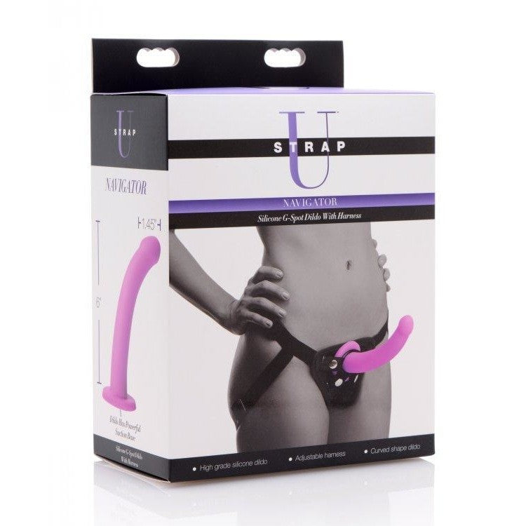 Strap U Navigator Silicone G Spot Dildo W- Harness