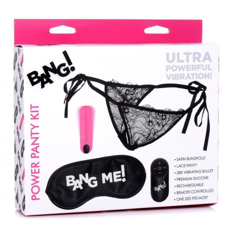 Bang! Power Panty Lace Panties Bullet & Blindfold Kit Pink