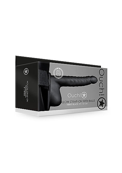 Ouch! Ribbed Hollow Strap-on 8 In W/ Balls Black