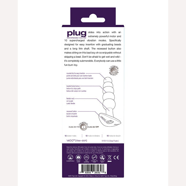 Vedo Plug Rechargeable Anal Plug Deep Purple