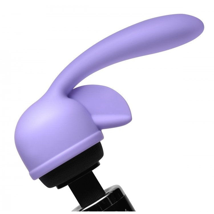Features: include a perfectly placed fluttering clitoral stimulator that dances upon your most delicate areas, plus can be safely inserted 6 inches, arm gradually expands at the top. Both elements will carry the powerful vibrations from your wand to you. These exciting features combine to afford you a sensory experience you are not likely to forget. Measurements: 8 inches in total length, 6 insertable, 1.5 inches in diameter at widest point. Opening measures 2.25 inches in diameter. Material Silicone. Color Purple. Note fits standard size wands, including Hitachi Massage Wand. Wand not included