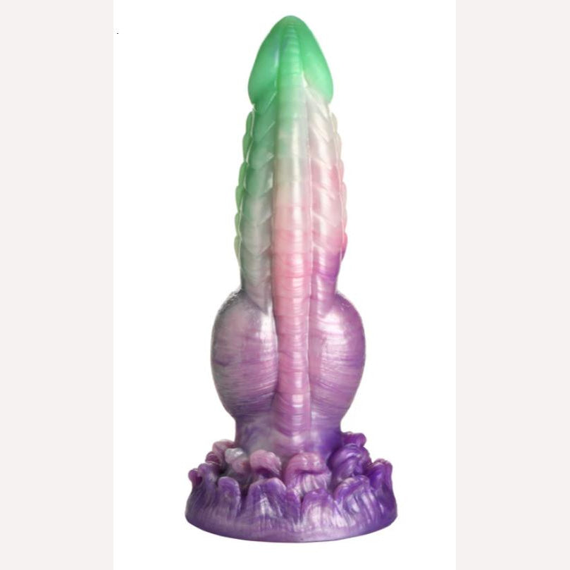 Features: Fantasy Dildo: This jade green and purple dong is designed after mythical water birds! It has a tapered tip, firm, ribbed ridges along the sides of the shaft, and a pair of bulging balls that are knotted lower down. Crashing waves of plumage adorn the base. Suction Cup Base: Enjoy the wide, suction cup base of this dildo. Simply press firmly on any flat surface and enjoy riding it hands-free! Harness Compatible: The wide, flanged base is compatible with most strap-on harnesses so you or a partner can wear the dildo and bring the fantasy fully to life! Premium Silicone: Made of body-safe, phthalate-free, premium silicone. Also found in: All products, Aquatic creature cocks, Creature cocks, Creature cocks dildos, Dildos, Harness compatible creature cocks, Mythological creature cocks, New creature cocks, Products in stock, Suction cup dildos Features: Premium silicone, Suction cup base, Firm yet flexible, Phthalate-free