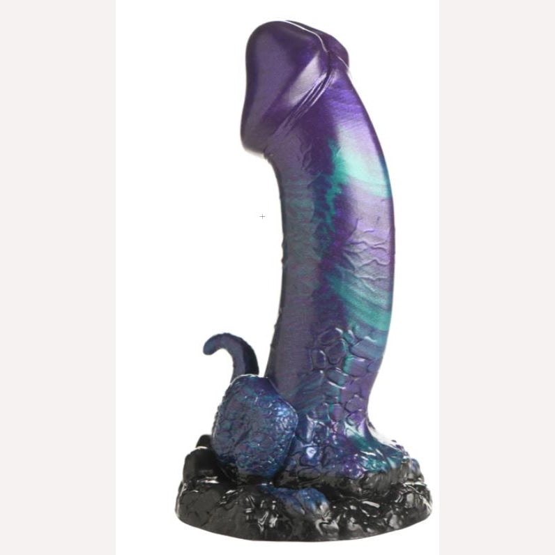 Features: Fantasy Dildo: This fun fantasy dong is a tiny dinosaur with a large dong for a head! It comes in a beautiful, glittery blue, purple, teal and black color combination! Suction Cup Base: Enjoy the wide, suction cup base of this dildo. Simply press firmly on any flat surface and enjoy riding it hands-free! Harness Compatible: The wide, flanged base is compatible with most strap-on harnesses so you can wear it and play the fantasy roleplay character you come up with! Premium Silicone: Made of body-safe, phthalate-free, premium silicone, it is best used with water-based lubricants only. Also found in: All products, Beast creature cocks, Creature cocks, Creature cocks dildos, Dildos, Harness compatible creature cocks, New creature cocks, New products, Products in stock, Retail packaged, Suction cup dildos Features: Premium silicone, Suction cup base, Firm yet flexible, Phthalate-free