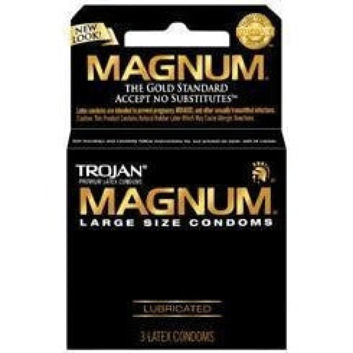 Trojan Magnum Condoms 3 Pack. The Trojan Magnum is larger than standard latex condoms for extra comfort. Tapered at the base for a secure fit. Silky smooth lubricant for comfort and sensitivity. Made out of Premium quality latex. Reservoir end. Trojan Magnum is made from premium quality latex helps reduce the risk of sexually transmitted diseases and unwanted pregnancies. Lubricated condoms for comfort and sensitivity. Special reservoir end for extra safety. 15% larger than standard size for extra comfort. Tapered at the base for a secure fit. Each measures 8.07 inches long by 2.17 inches wide with a thickness of .003 inches. A condom is a barrier device most commonly used during sexual intercourse to reduce the probability of pregnancy and spreading sexually transmitted diseases, STDs such as gonorrhea, syphilis, and HIV. It is put on a man's erect penis and physically blocks ejaculated semen from entering the body of a sexual partner. Because condoms are waterproof, elastic, and durable, they are also used in a variety of secondary applications. These include collection of semen for use in infertility treatment as well as non-sexual uses such as creating waterproof microphones and protecting rifle barrels from clogging. Safe sex practice, birth control, disease prevention, pregnancy prevent. Always practice safe sex. Trojan Brand Magnum Large Latex Condoms from Paradise Marketing.